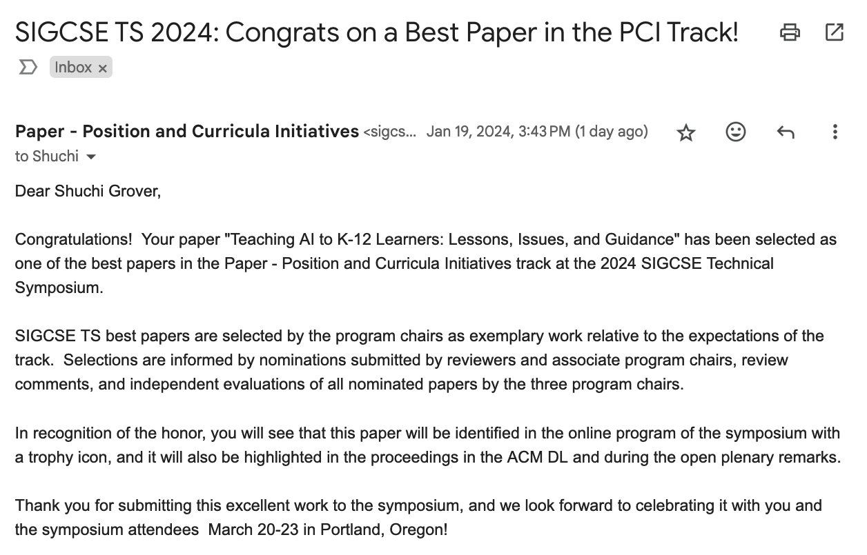 Source : twitter.comShuchi Grover on LinkedIn: #sigcse2024 #k12 #ai #education